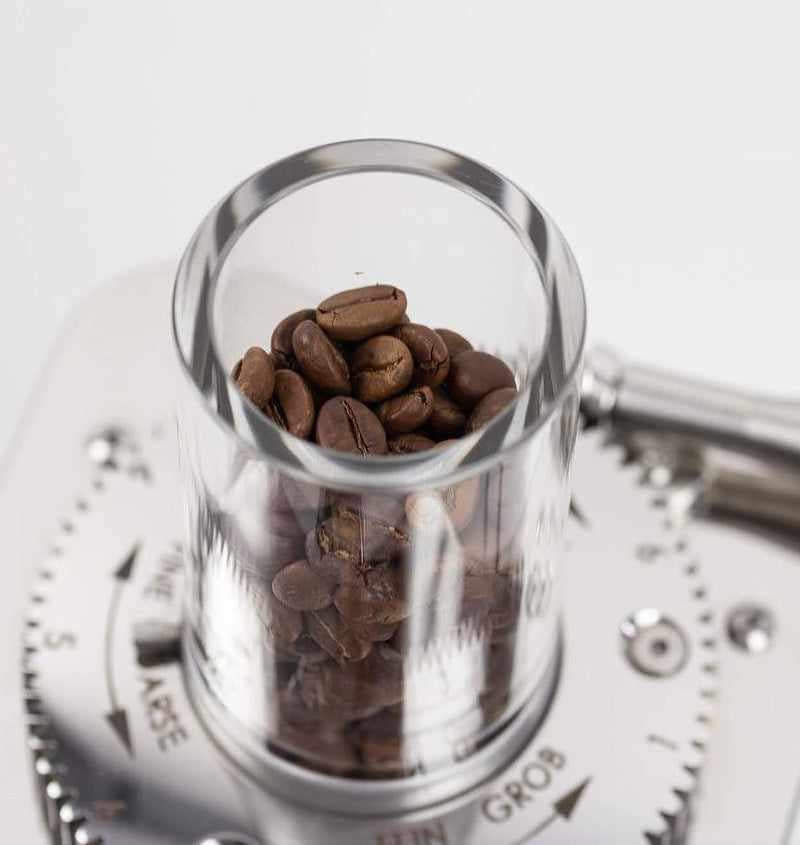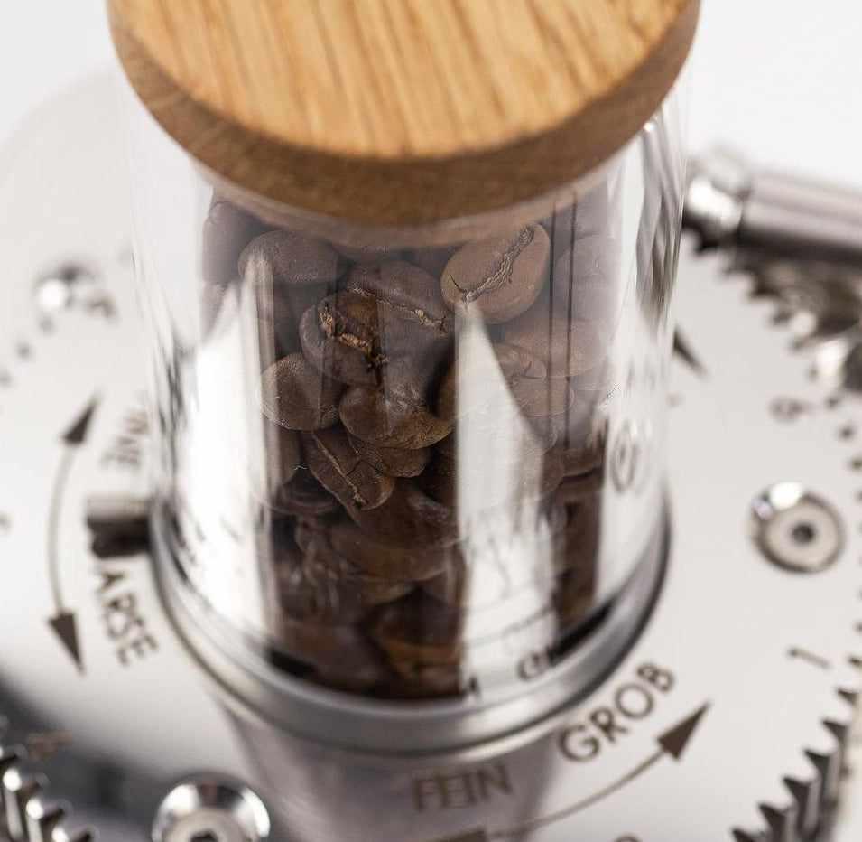 Kaikki tuotteemme ovat käsintehtyjä Wiedemannin tehtaalla ja valmistettu kestävästi hoidetuista metsistä peräisin olevasta puusta. Papusäiliömme on täydellinen päivitys kahvimyllyysi ja pitää papusi tuoreina koko ajan.