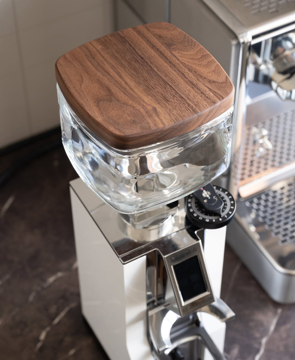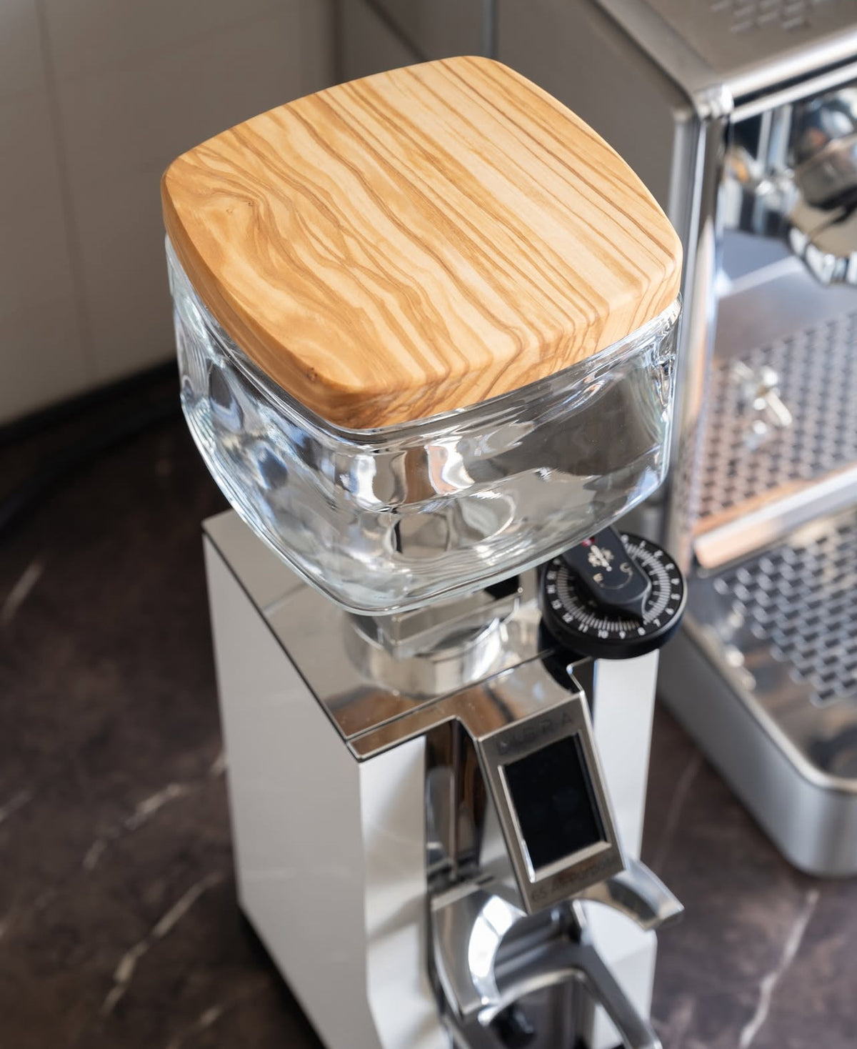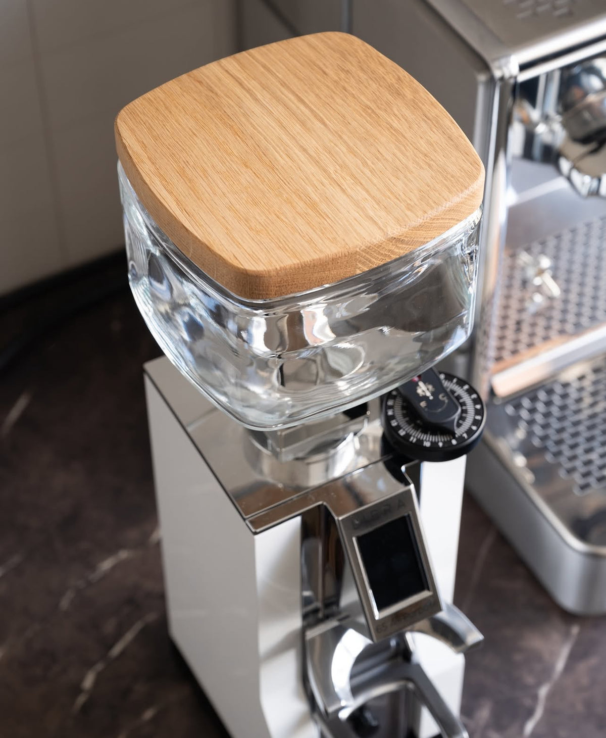 Tämä käsintehty massiivipuusta valmistettu kansi on mittatilaustyönä tehty Eureka Mignonin 500 g lasikannu. Yksinkertainen mutta tyylikäs tapa parantaa kahvimyllysi tuntumaa ja ulkonäköä – täydellinen niille, jotka arvostavat sielukkaita materiaaleja.