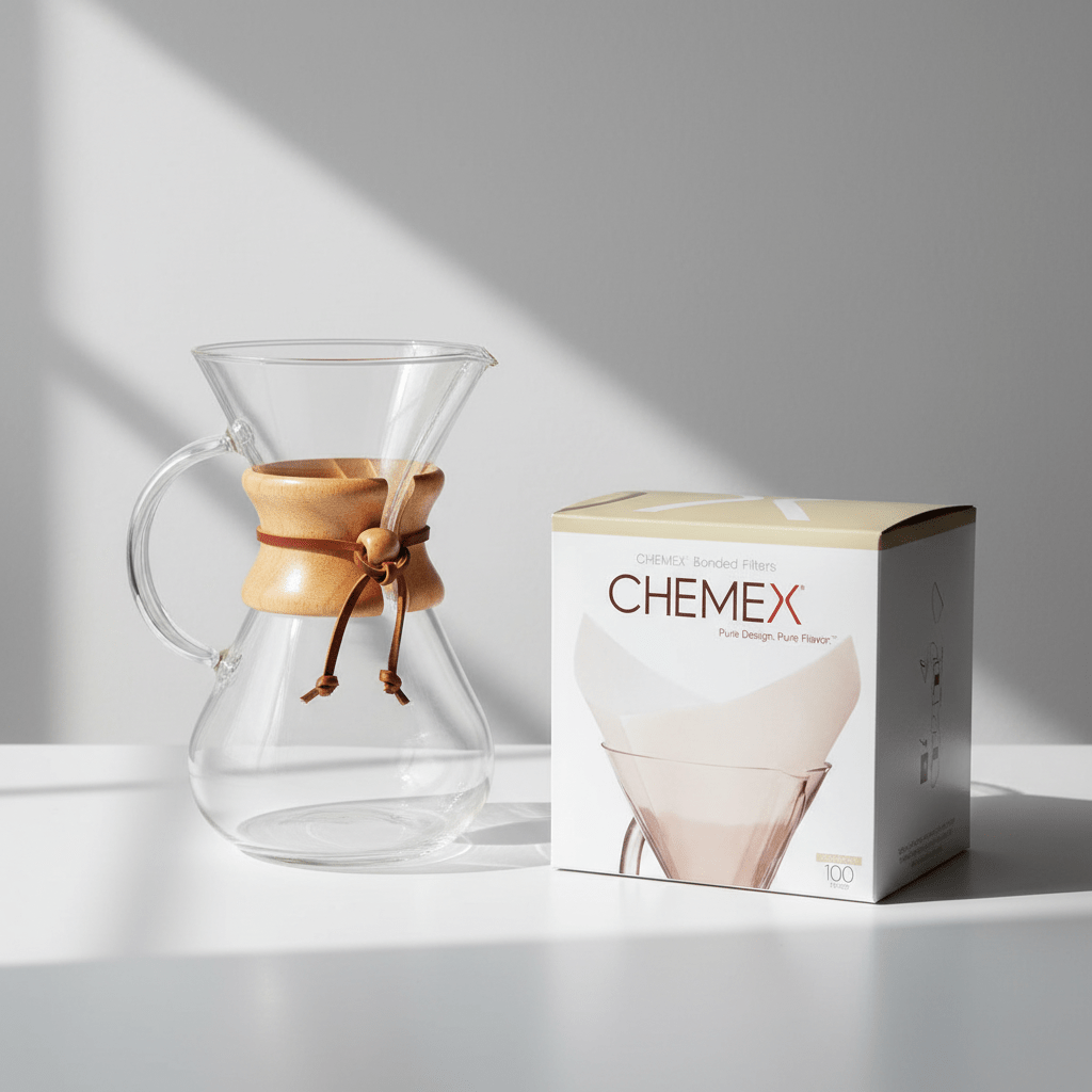 Tämä paketti sisältää kaiken, mitä tarvitset aloittaaksesi Chemex-menetelmällä – yksi arvostetuimmista tavoista valmistaa kahvia.