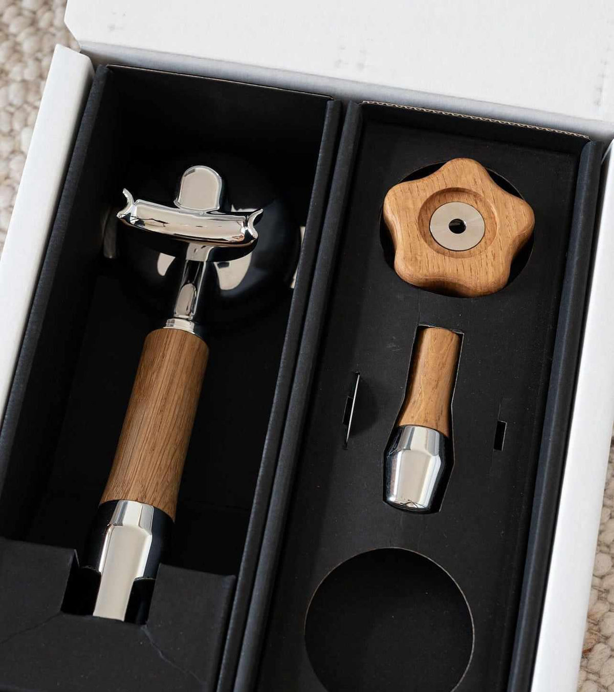 Valitse neljästä huolellisesti valitusta puulajista: oliivi, saksanpähkinä, tammi ja tumma tammi – kaikki kestävästi hankittuja ja käsitelty ekologisella hiusöljyllä, joka korostaa puun luonnollista luonnetta ja tuntumaa. La Marzoccoa inspiroiva muotoilu yhdistää kestävyyden ja eleganssin harmonisessa tasapainossa, tehden tästä kahvasta yhtä toimivan kuin visuaalisesti houkuttelevan.