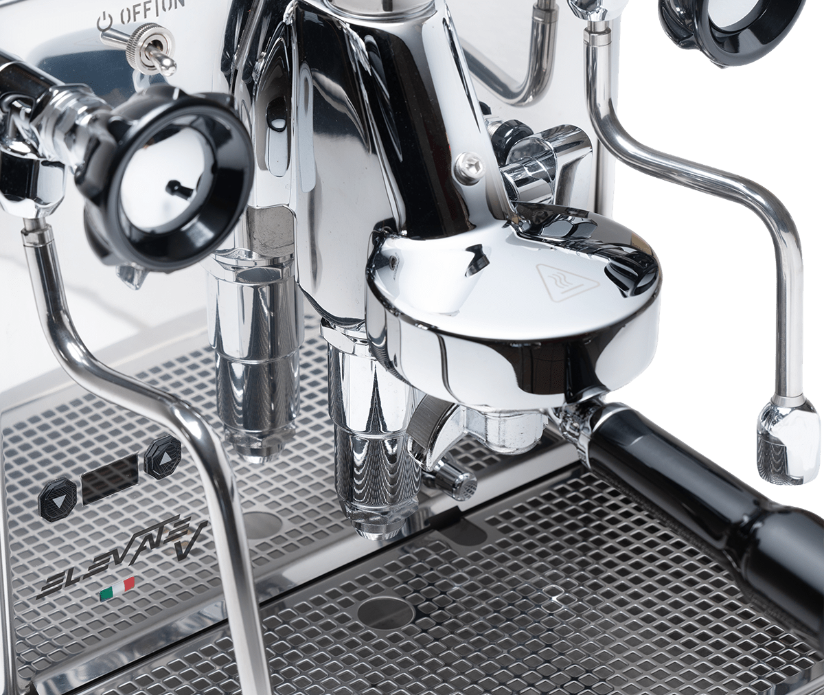 Elevate V on varustettu Quick Millin eksklusiivisilla, ergonomisilla venttiileillä sekä palonkestävillä sauvoilla — täydellinen maitovaahtoon ja turvallisempaan käsittelyyn.
