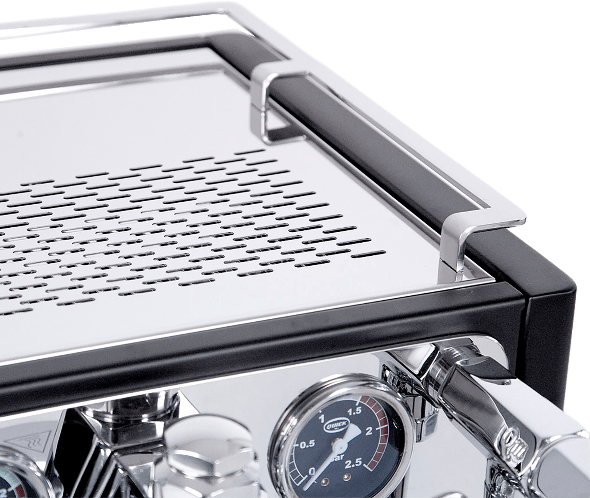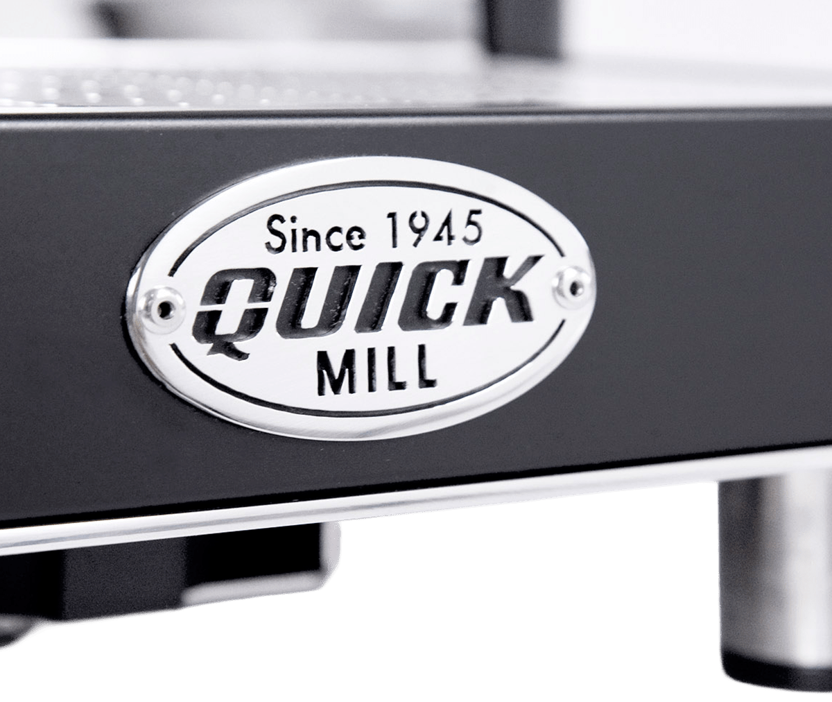 Kokonaan ruostumattomasta teräksestä valmistettu rakenne, syvän mustat yksityiskohdat, joystick-nupit ja Quick Mill -ryhmä luovat ammattimaisen visuaalisen ilmeen, joka sopii sekä keittiöön että työpaikalle.