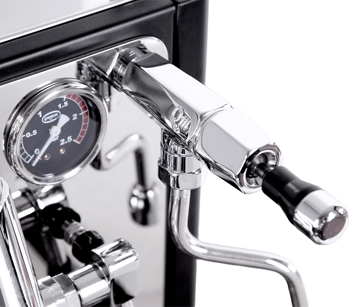 Ohjaimet: PID; OLED-näyttö; shot-ajastin; tason tunnistin; ohjelmoitava esiuutto; eco- ja valmiustila; kaksoismittarit (pumppu 0–16 bar, boileri 0–3 bar); höyryboileri kytkettävissä pois päältä; takaa valaistu päälle/pois-kytkin teräksestä