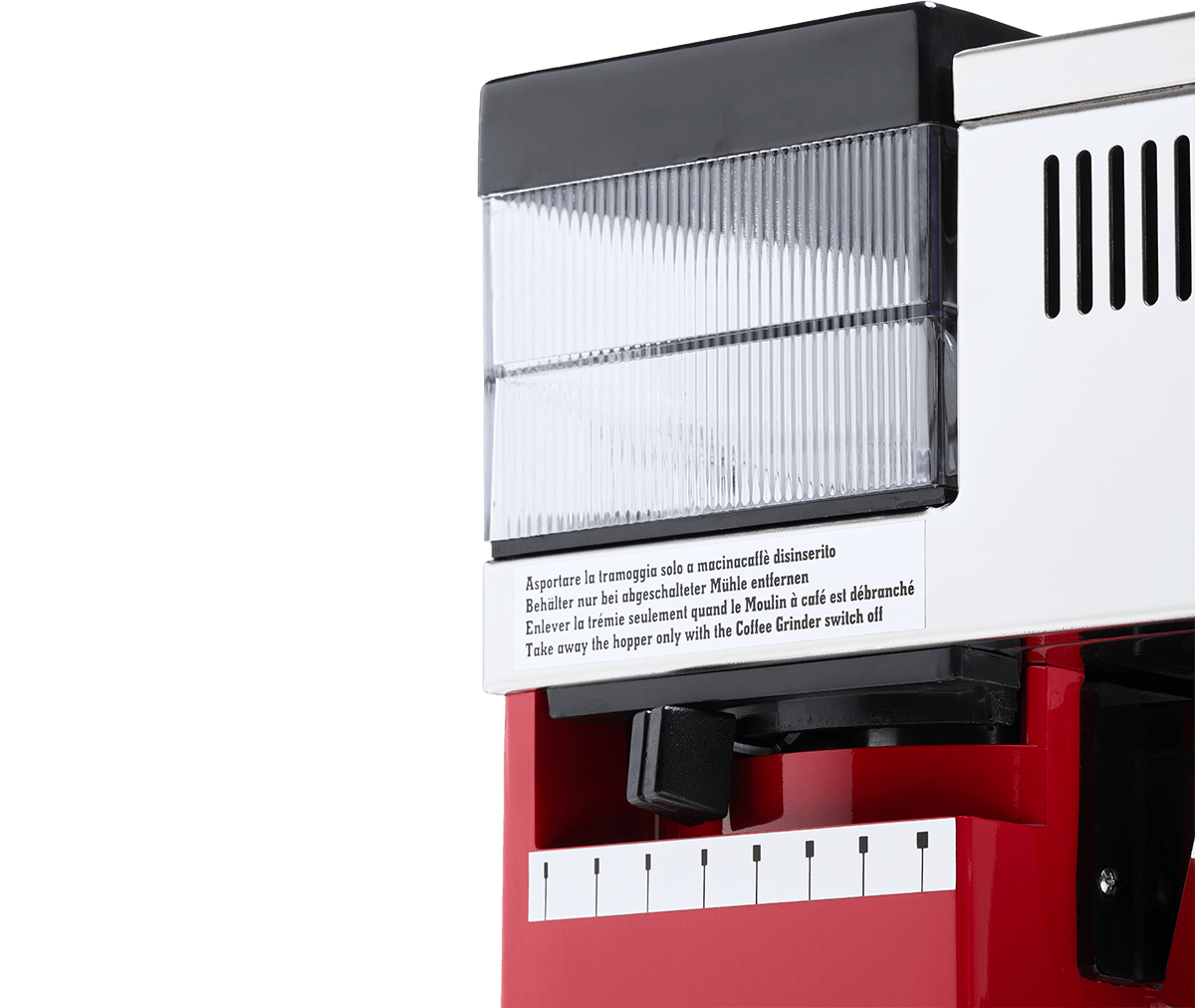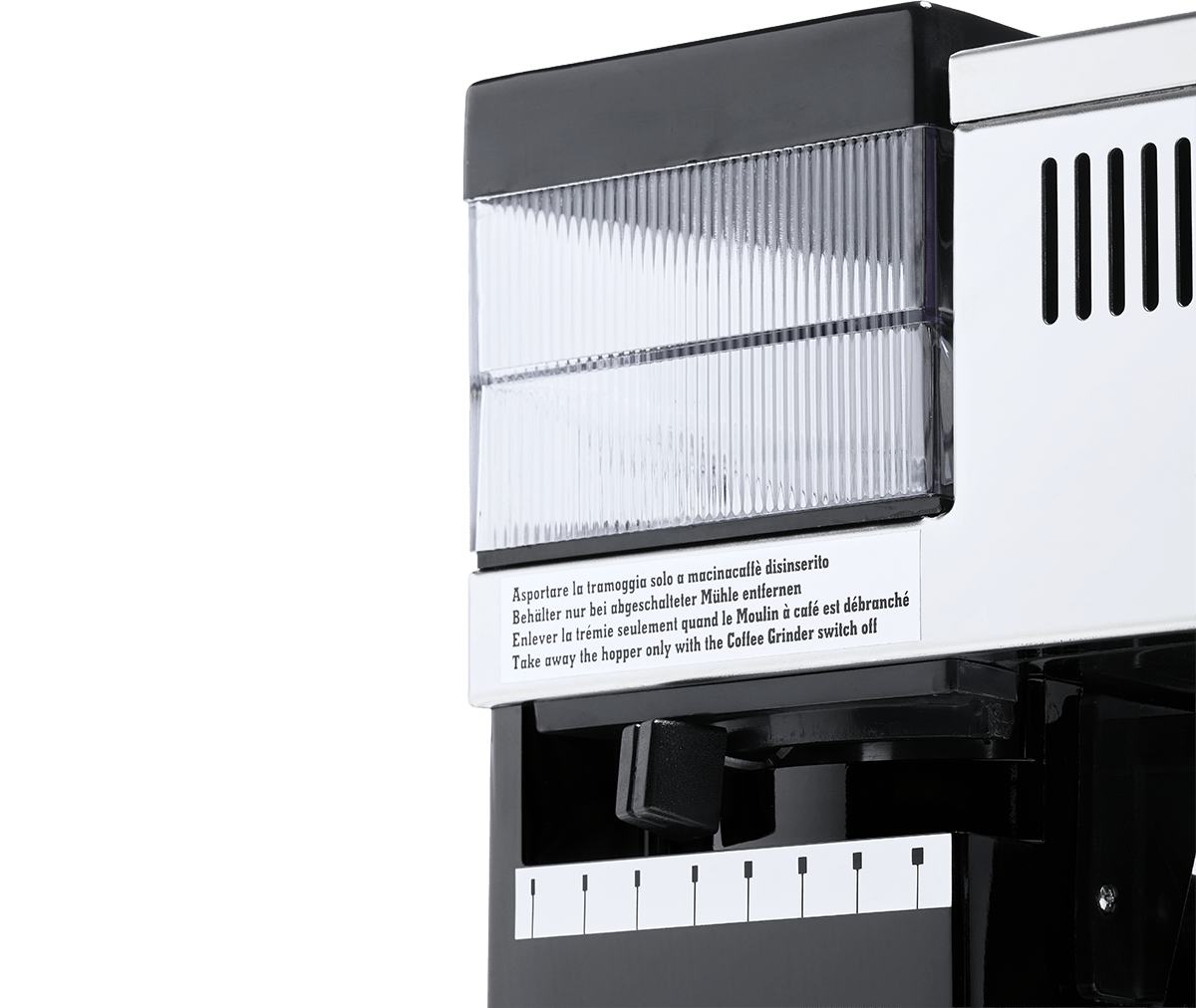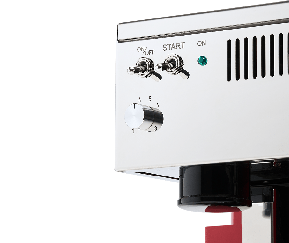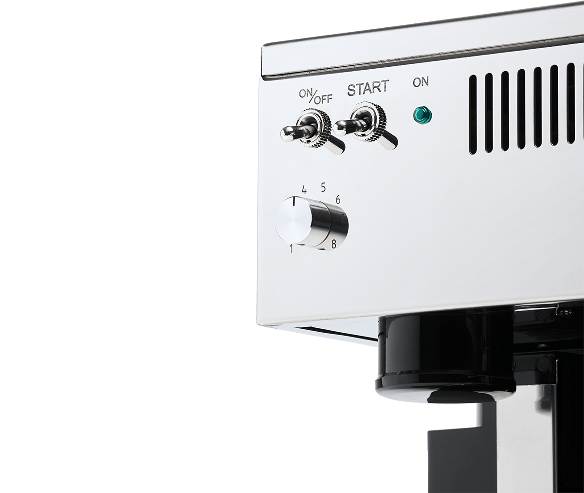 Laite ohjataan klassisilla vivuilla, merkkivaloilla ja sisäänrakennetulla tampperilla — täydellinen ja yksinkertainen “pavuista kuppiin” -kokemus.