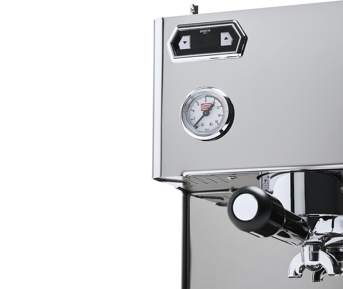 Manometri (0–16 bar) näyttää tarkasti pumpun työskentelypaineen, mikä auttaa optimoimaan jauhatuskarkeuden, annostelun ja tampauksen täydellistä espressoa varten.