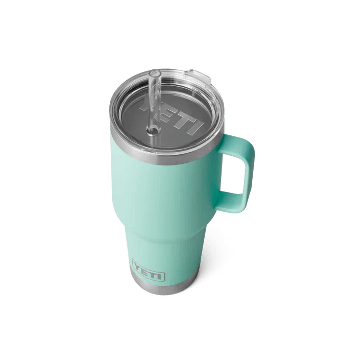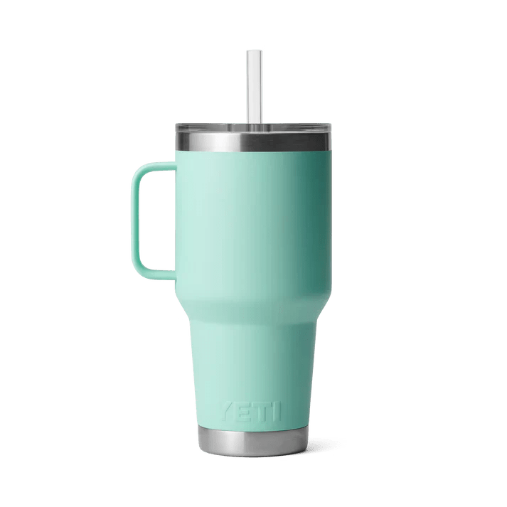 YETI Rambler -olkimuki, 1 litra, värissä Seafoam, on täydellinen muki niille, jotka haluavat jääkylmiä juomia koko päivän, tapahtuipa mitä tahansa. Tietoja Olitpa sitten seikkailulla tai kotona, mukissa on uudelleenkäytettävä pilli ja kansi, jotka pitävät juomasi turvassa ja läikkymättä.