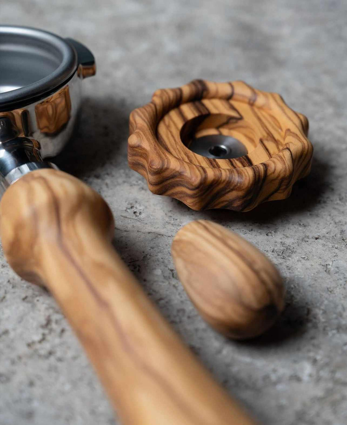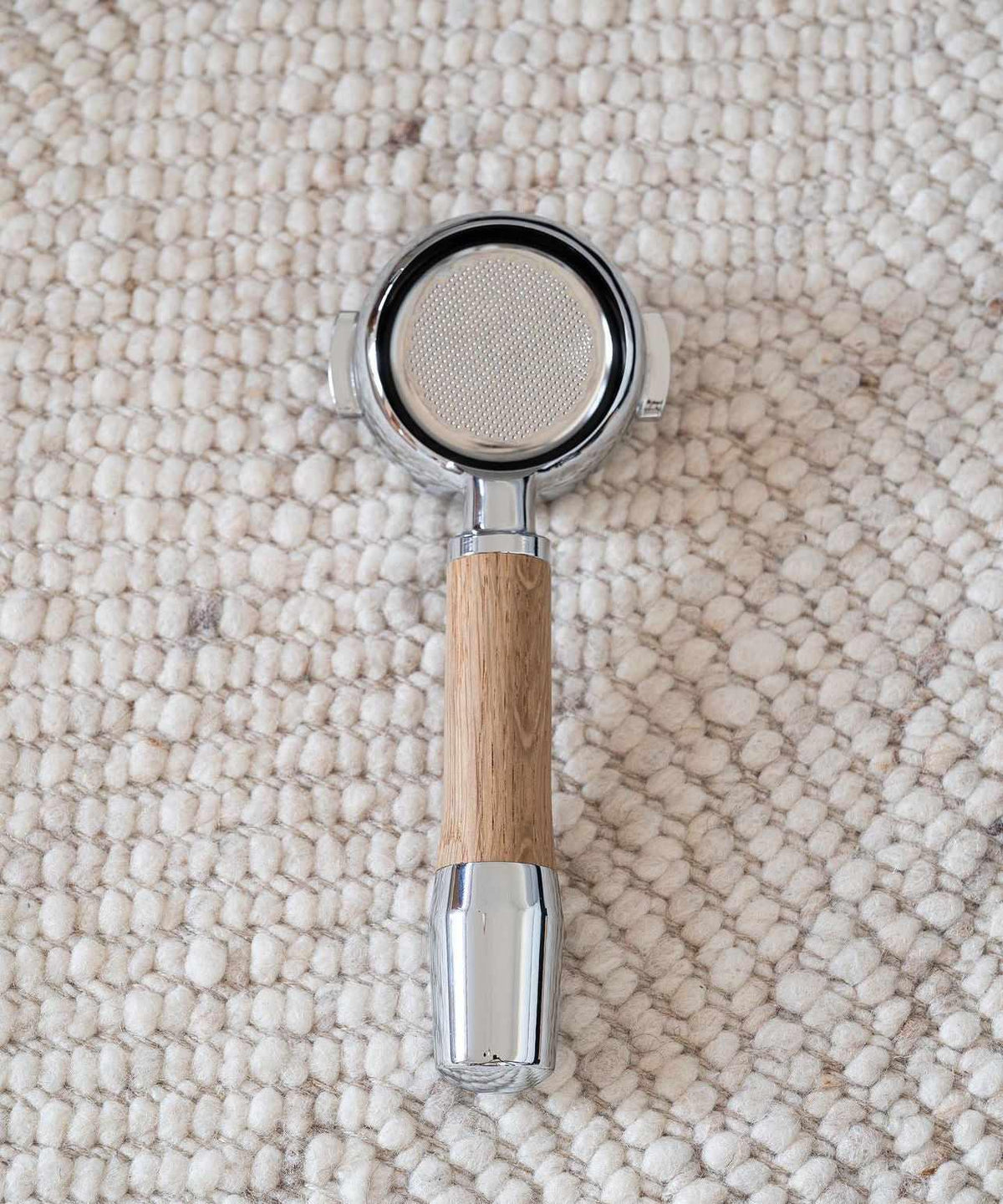 Elegantti-mallimme kahva toimitetaan alkuperäisillä ECM-portafilterin päillä, kun taas kaikissa muissa portafiltereissä on ruostumattomasta teräksestä valmistetut portafilterin päät. Kahvamme tarjoaa päivittäin ainutlaatuisen kosketuskokemuksen. Puumme käsitellään käsin orgaanisella kovalla öljyllä, jotta puun luonnollinen tuntuma säilyy.